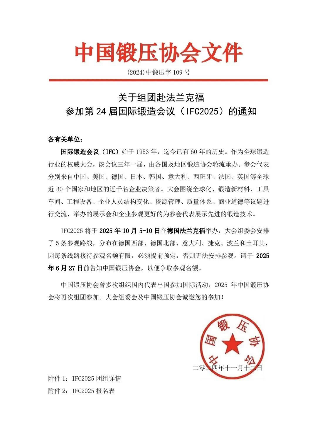 我司憑借在精密鍛造領(lǐng)域的技術(shù)積累和市場表現(xiàn),獲得中國鍛壓協(xié)會的正式邀請,成為本次中國代表團的重要成員之一。這既是對我司實力的認可,也是展示中國鍛造水平的寶貴機會。
